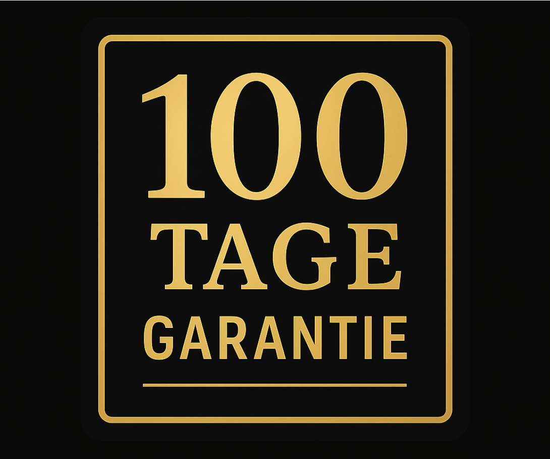 Deine Bestellung ist sicher. Solltest Du nicht zu 100% zufrieden sein, melde Dich einfach bei uns. Du bekommst sofort innerhalb von 100 Tagen nach Bestellung eine volle Rückerstattung.