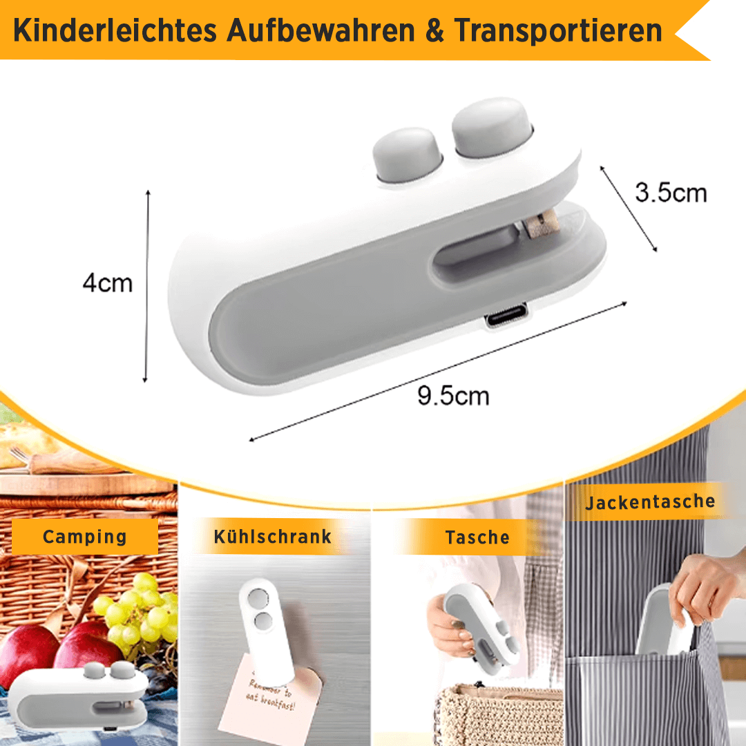 Einfache Handhabung: - Mit diesem raffinierten Miniversiegelungsgerät wird die sichere und sorgenfreie Aufbewahrung von Lebensmitteln zum Kinderspiel. Egal, ob zu Hause, im Büro oder unterwegs – der GENIRO BASI ist Dein idealer Begleiter.